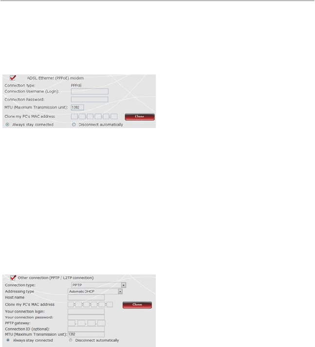- If you select the PPTP connection type: