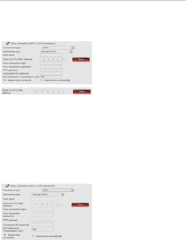 - If you select the PPTP connection type: