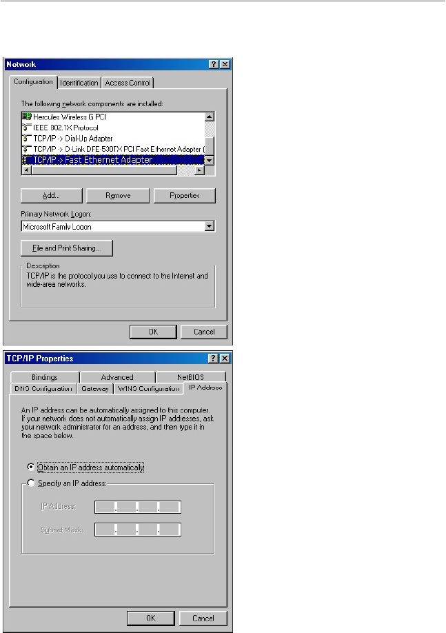 3. Click Properties and select Obtain an IP