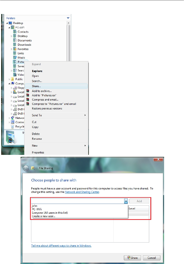 3. In the File Sharing window, select the user(s) who will be able to access this folder, then click Add.